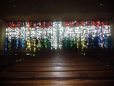 | A su espalda, el gran vitral de Gabriel Loire y Ráfols Casamada.2011 (A.Mª.F.) |