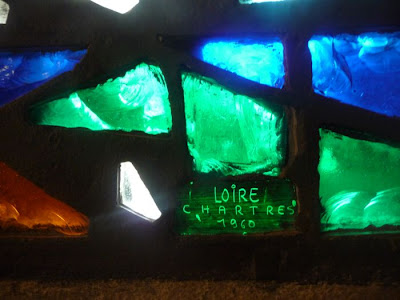 | Vitral en La Virgen del Camino con la firma del vitralista G. Loire. 2011 (A.Mª.F.) |