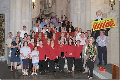 En esta ocasión se desplazó hasta la Sagrada Familia una representación vecinal con parte de los integrantes de la coral Dolça Catalunya, que acompañaron la misa oficiada en la cripta del templo el domingo día 24 de Junio un día antes del aniversario de Gaudí, nacido en 1852. Llevado por sus portadores, no faltó el gegant Gaudí, luciendo en el pecho el conocido rótulo con la leyenda trilingüe que ya se ha hecho habitual en los medios, dejando constancia de la que consideran auténtica procedencia del arquitecto: Jo sóc de/ Yo soy de/ I’m from, Riudoms