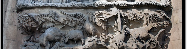 | El perro de La Adoración de los Pastores en la fachada del Nacimiento de la Sagrada Familia, Barcelona. 2012 |