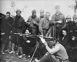 | Orwell al fondo sobresaliendo su altura entre los milicianos del POUM |