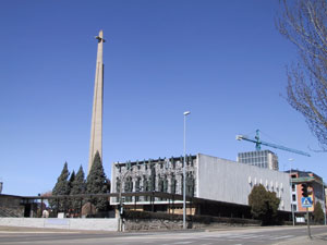 | Los dos Santuarios de la Virgen del Camino, en León. El antiguo, y el actual construido entre 1959-1961 por el P. Coello de Portugal. |