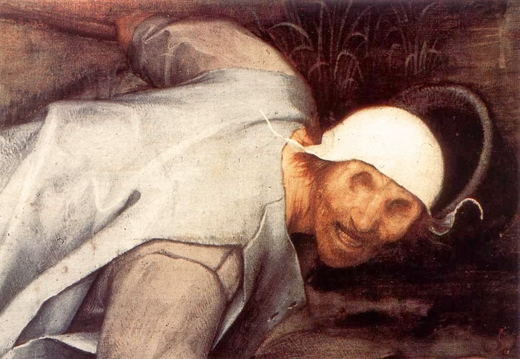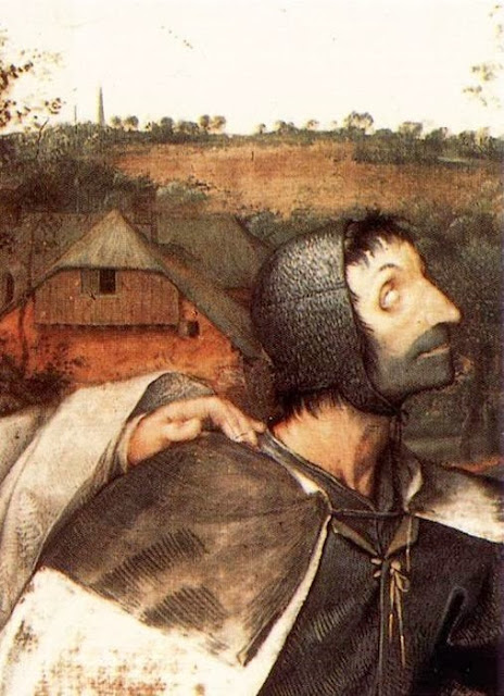 De la ceguera, el cuadro que más valoro es el de Jan Brueghel el Viejo. Partiendo de los Evangelios de Mateo 15, 14-24 y de Lucas, 6,39 donde aparece la parábola: -Dejadlos; son ciegos guías de ciegos; y si el ciego guiare al ciego, ambos caerán en el hoyo. En esta imagen, seis ciegos caminan agarrados a una cuerda guiados por el primero, que en el cuadro acaba de precipitarse al río. El segundo ciego está trastabillando a punto de caer sobre el primero. El tercero parece vacilar y los tres siguientes siguen andando confiados, pero el espectador advierte cuál será su suerte.