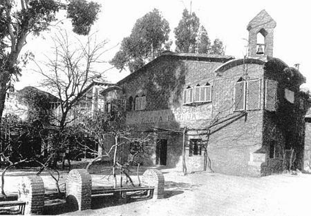 | Imagen de la casa parroquial en 1906. En ella vivían en la planta baja los guardas de las obras, la familia Alpiste, y en la parte superior estaba el estudio de Antonio Gaudí y su habitación. |