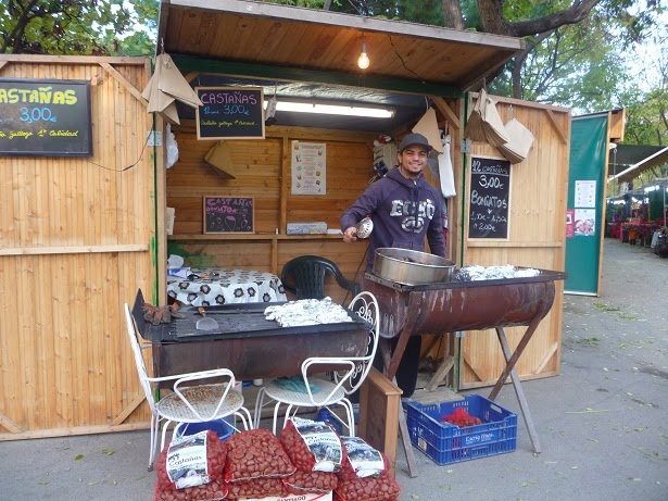 | El vecino brasileño en su puesto tradicional de castañas asadas. 2013. (A.Mª.F.) |