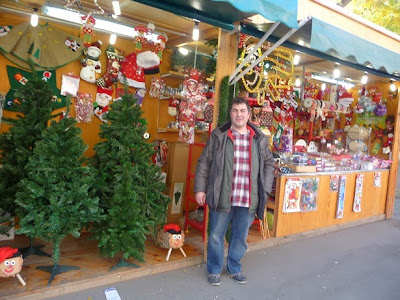 | Miguel Angel ante su parada de adornos navideños. 2013 (A.Mª.F.) |