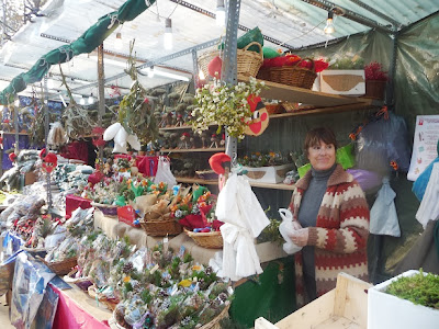 | Vicenta despachando sus árboles, muérdago, acebo y ramas de eucalipto. 2013 (A.Mª.F.) |