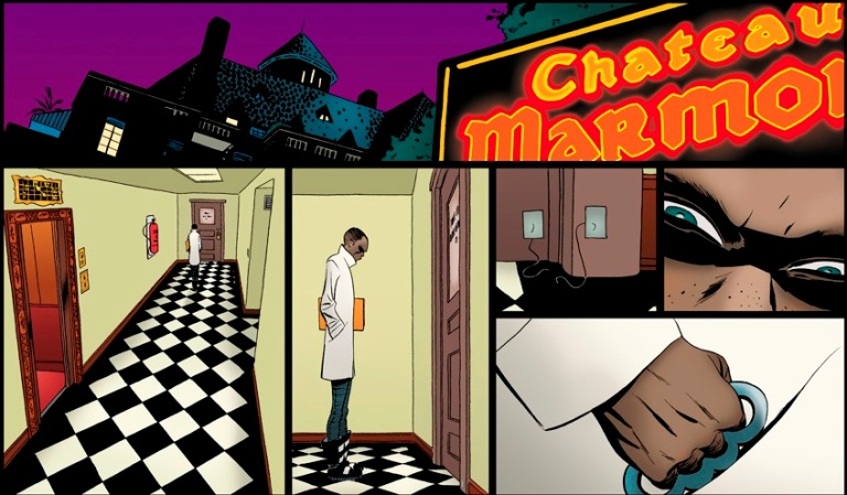 | Fotograma de The Private Eye. Dibujante Marcos Martín, ilustrad. Muntsa Vicente, guionista Brian K. Vaughan |