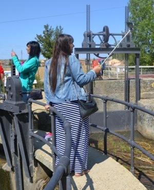 | Peligrosos selfis en la pasarela del Canal, Fromista. (AMªF) |