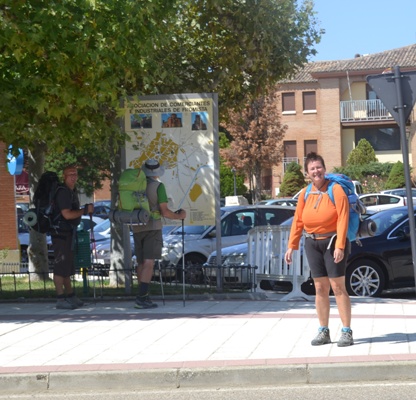 | ...Unos peregrinos saludan a la cronista desde el otro lado de la carretera... |