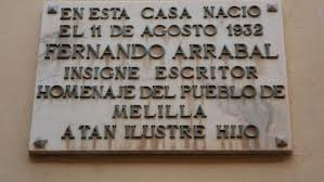 | La plaza colocada en Melilla a su hijo predilecto, Fernando Arrabal. (elalminardemelilla.com) |