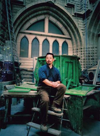 | Adrià en la sala de su sede en Barcelona,"la capilla" donde se reunen los especialistas que investigan los nuevos platos de El Bulli. 2006 (A.Mª.F.) |