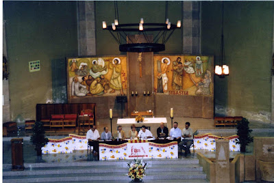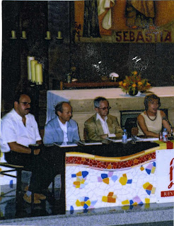 En la mesa: J.R. Corts, Sr. Rector, J.Mª Subirachs, A.Mª Ferrin,